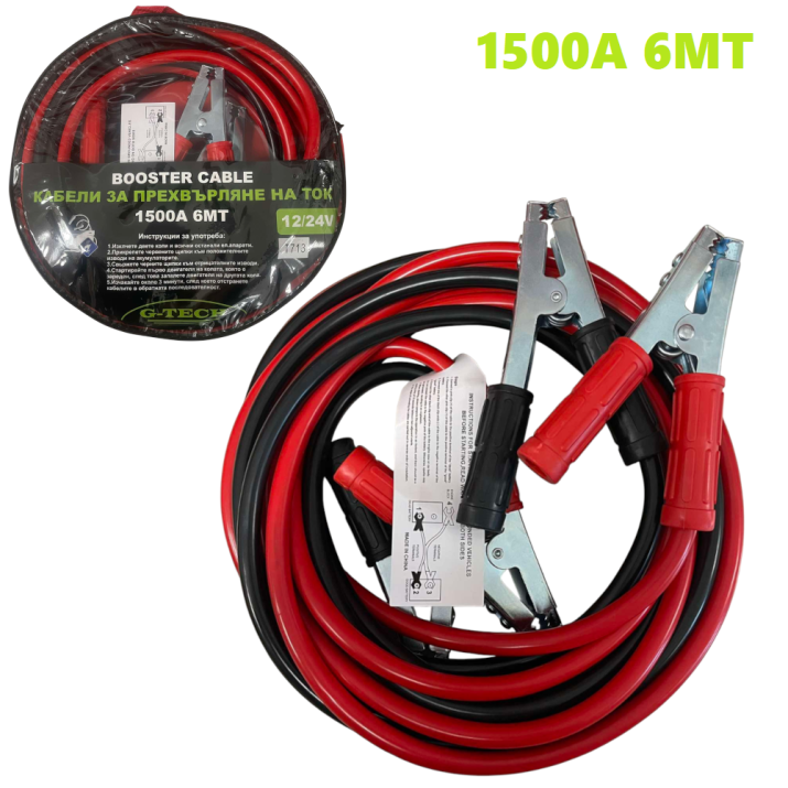 Кабели за подаване на ток 1500А – 6 МТ G-tech | Усилени стартови кабели за автомобили